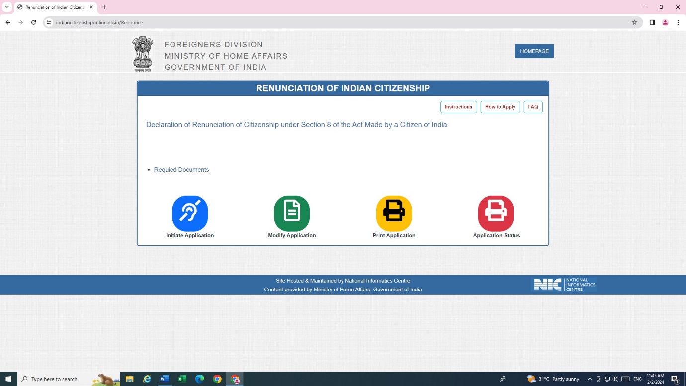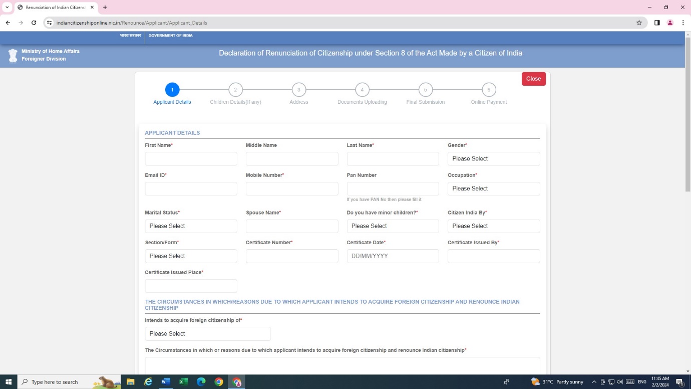 INSTRUCTIONS TO APPLICANTS FOR RENUNCIATION OF INDIAN CITIZENSHIP