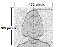 The photograph size must be 4x6 cm and the associated dimensions should be at least 472 pixels x 709 pixels (height x width).